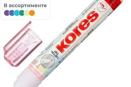 Корректирующий карандаш Kores предназначен для точечных исправлений на любых типах бумаги. Объем флакона 10 г (8 мл). Металлический наконечник позволяет наносить линии толщиной от 1 до 1,5 мм. Содержит быстросохнущую основу, обладающую высокой кроющей способностью. Прозрачный колпачок с клипом защищает наконечник от высыхания. Перед применением корректирующий карандаш необходимо встряхнуть. После использования плотно закрыть колпачок. Рекомендуется хранить вдали от прямых солнечных лучей при комнатной температуре.
