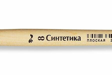 Кисть синтетика плоская 8. Идентична натуральному колонку по параметрам жёсткости и эластичности. Упругость волоса даже выше, чем у колонка. Однако синтетика уступает колонковым по наполнению кистью водой и объему впитываемой краски. Синтетическими кисточками можно рисовать чёткие и ровные линии. Синтетический волос имеет капиллярный эффект, что позволяет использовать такие кисти даже в акварели. Кисть имеет короткую (16 см), деревянную ручку. Кисть предназначена для работы акварелью. Поставляется в полипропиленовом пакете.