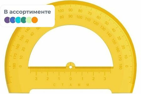 Транспортир Neon Cristal изготовлен из пластика. Имеет 180-градусную шкалу. Нижняя часть представляет собой линейку длиной 12 см. Шкалы и логотип нанесены на транспортир с помощью термопечати. Предназначены для чертежных работ. В ассортименте 4 цвета.