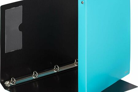 Папка на кольцах рекомендуются как для временного, так и длительного хранения, систематизации, архивирования документов. Такие папки используются в работе офисными сотрудниками различных специальностей, направлений, должностей. Можно использовать для хранения документов дома.Стильная папка на четырех кольцах Комус изготовлена из высококачественного полипропилена толщиной 1 мм. Диаметр кольца - 17 мм. Двухцветный эффект: внешняя поверхность голубая, внутренняя - черная. Формат А4. Отличается устойчивостью при вертикальном размещении. Внутри есть карман для компакт-дисков и визитных карточек. Ширина корешка составляет 25 мм. Папка на кольцах вмещает до 100 листов стандартной плотности.