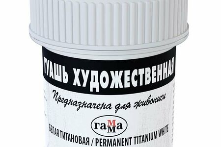 Гуашь Гамма. Художественная белила титановые изготовлена на основе натуральных компонентов и высококачественных пигментов. Предназначена для живописи, художественных и декоративно-оформительских работ. После высыхания образует матово-бархатистое покрытие. Подходит для многих поверхностей, включая дерево, стекло, керамику. Титановые белила в отличие от цинковых имеют теплый оттенок, ими удобно прописывать более белые места. Они устойчивы в соединении с другими красками, меньше реагируют на свет и более долговечны. Гуашь находится в пластиковой герметичной баночке. Поставляется без кисти.