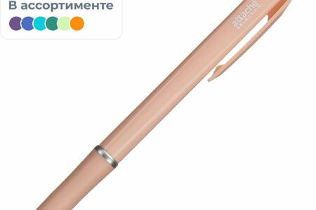 Ручка шариковая автоматическая Attache Selection Flora изготовлена из пластика пастельных оттенков с контрастными деталями серебристого цвета. Сменный стержень длиной 107 мм заправлен высококачественными масляными чернилами синего цвета. Резиновая манжетка в цвет корпуса способствует надежному захвату пальцев и препятствует выскальзыванию. Диаметр пишущего узла 0.5 мм создает линию письма, равную 0.35 мм. Форма наконечника: игольчатая.Внимание. Товар поставляется в нескольких цветовых решениях (без возможности выбора).