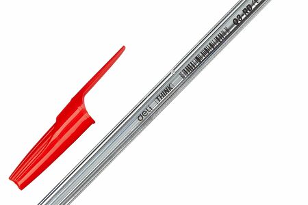 Ручка шариковая Deli Think с диаметром пишущего узла 1 мм. Четкие линии чернил не размазываются при нечаянном соприкосновении рукой. Съемный защитный колпачок оснащен пластиковой клипсой. Удобный клип позволяет фиксировать ручку на ежедневниках, блокнотах и карманах одежды. Эргономичная ручка удобно лежит в руке и не вызывает дискомфорта даже при длительно использовании. В производстве ручек используются чернила пониженной вязкости, гарантирующие необыкновенно мягкое и четкое письмо на любой бумаге. Высококачественные чернила позволяют увеличить продолжительность письма и сократить их расход. Ручка пишет очень тонко и аккуратно.Цвет чернил: красный.Толщина линии письма: 0.7 мм.
