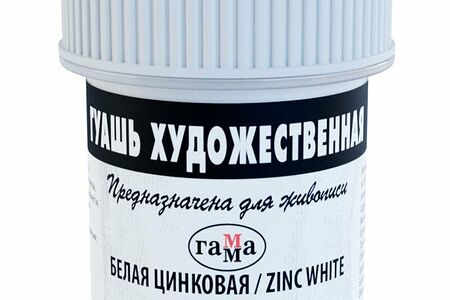 Гуашь Гамма. Художественная белила цинковые изготовлена на основе натуральных компонентов и высококачественных пигментов. Цинковые белила используются в сочетании с другими красками, так как в сравнении с титановыми они более прозрачны, что дает возможность создавать различные оттенки. Гуашь находится в пластиковой герметичной баночке. Поставляется без кисти.