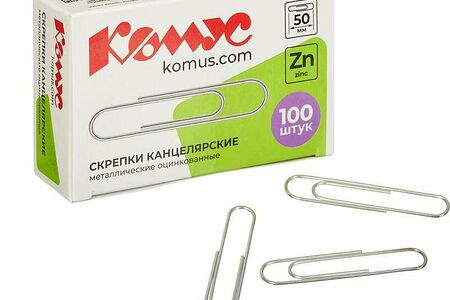 Скрепки КОМУС оцинкованные, 50 мм, негофрированные, 100 шт/уп доставка