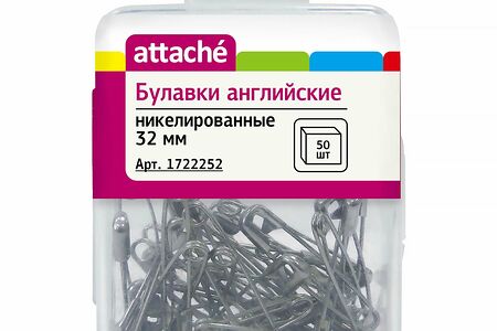 Булавки английские Attache, 32 мм, никелир.,50 шт/уп,пласт.коробка,европодв доставка
