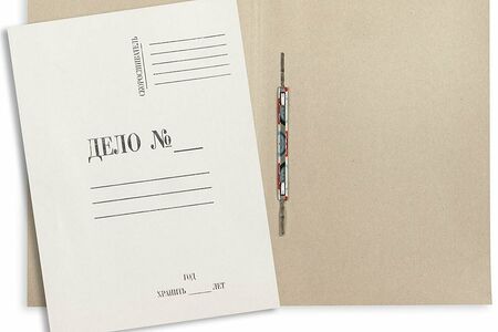 Папка-скоросшиватель Дело формата А4 изготовлена из белого мелованного картона (плотность 280 г/кв.м). Оснащена металлическим механизмом сшивания, скоросшиватель крепится с внешней стороны. Длина усиков составляет 45-50 мм. Ширина корешка данного скоросшивателя составляет от 20 до 25 мм. Вместимость до 200 листов стандартной плотности. Размер папки в сложенном виде составляет 230 310 мм (при этом по ТУ производителя допустимы отступы +/- 5 мм с каждого края). Папки-скоросшиватели упакованы в гофрокороба по 250 штук. Стоимость указана за штуку.Папки могут поставляться с разным шрифтом. Законодательные и технические документы.
