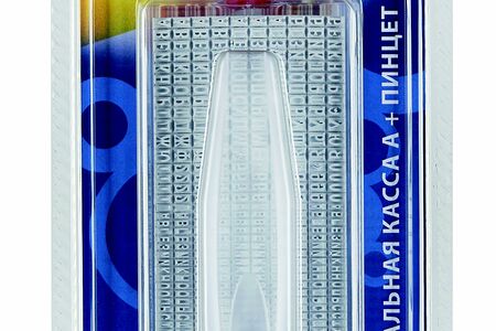 Касса TypeSet А/P русских букв, цифр, символов универсальная для самонаборных штампов, датеров и круглых печатей Colop + пинцет. В состав кассы входит 480 элементов (количество букв и цифр 448, символов 32), высота основного шрифта 2,2 мм, шрифта для выделения 3,1 мм. Набор текста производится в зеркальном отображении (справа налево). Каждый элемент кассы имеет одну ножку и крепится при помощи пинцета в одну строку штампа. Для равномерного окрашивания оттиска важно при наборе текста отступать от каждого края строки 1-2 мм. При размещении символов на самом краю не будет отпечатываться середина оттиска. Расходный материал Colop подходит только для продукции Colop.