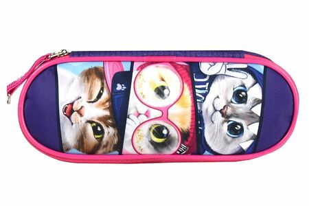 Пенал школьный КОТЫ 20.5х7.5х4см, микрофибра на ПВХ-основе, молния/61970 доставка