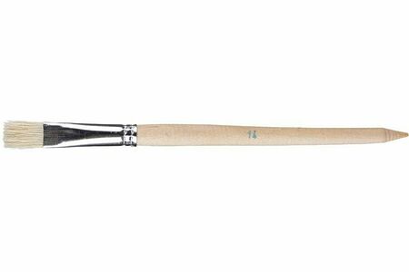 Кисть 1 School щетина плоская 14. Жесткая щетина отличается прочностью и упругостью, хорошо наполняется и удерживает краску. Кисть имеет длинную (22 см), деревянную ручку. Кисть предназначена для работ с маслом, тушью.Поставляется без упаковки.