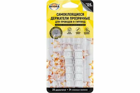 Держатель самоклеящийся для пр-ов и гирлянд, прозр, 20шт/уп, AVIORA 302-202 доставка