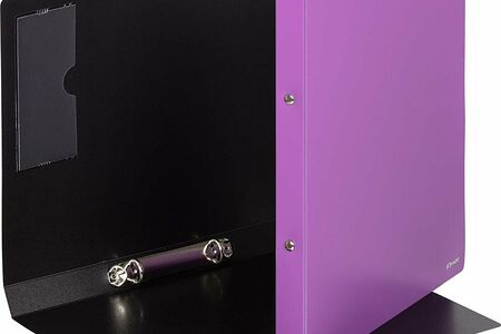апка на кольцах рекомендуются как для временного, так и длительного хранения, систематизации, архивирования документов. Такие папки используются в работе офисными сотрудниками различных специальностей, направлений, должностей. Можно использовать для домашних документов. Стильная папка на двух кольцах Комус изготовлена из высококачественного полипропилена толщиной 0,9 мм. Диаметр кольца - 17 мм. Двухцветный эффект: внешняя поверхность сиреневая, внутренняя - черная. Формат А4. Отличается устойчивостью при вертикальном размещении. Внутри есть карман для компакт-дисков и визитных карточек. Ширина корешка составляет 25 мм. Папка на кольцах вмещает до 100 листов стандартной плотности.