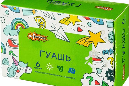 Гуашь 1 School Отличник предназначена для детского творчества, при необходимости разбавляется водой, безвредна, быстро высыхает, легко смывается с рук и одежды. Краски изготовлены на основе натуральных компонентов и высококачественных пигментов. Обладают хорошей кроющей способностью и чистотой цвета. Гуашь находится в пластиковых герметичных баночках с завинчивающейся крышкой.В набор входит 6 цветов: белый, желтый, зеленый, красный, синий, черный.Краски упакованы в цветную картонную коробку, размер упаковки (ДxШxВ): 94 62 32 мм. Объем одной баночки 10 мл. Поставляется без кисти.