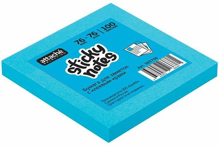Стикеры Attache Selection в формате 76 76 мм, голубого цвета, 100 листов. Идеально подойдут для сотрудников творческих профессий и руководителей: рекомендуются для использования в процессе совещаний, обучения, мозговых штурмов. Тон стикеров неоновый. Плотность бумаги: 75 80 г/кв.м. клейкий слой 22 Н/м. Длина клейкой стороны 76 мм. После удаления бумаги на поверхности не остается следов клеевого состава, лист можно крепить повторно. Особых условий хранения не требует, сертификации не подлежит, срок годности не ограничен.Чтобы увеличить срок службы стикеров, пожалуйста, следуйте рекомендациям:1) Отделять стикер от блока следует вдоль клеевой полосы. Так можно избежать скручивания и последующего отклеивания стикера.2) Прежде чем наклеивать стикер, убедитесь в отсутствии грязи и пыли на поверхности. На чистой поверхности срок службы клеевого