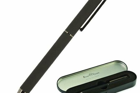 Ручка шариковая автоматическая Bruno Visconti Bergamo в футляре. Простой и надежный пишущий механизм выполнен из высококачественных материалов. Вид механизма поворотный. Корпус черного цвета выполнен из металла. Толщина линии письма 1 мм. Чернила синего цвета. Металлический футляр, размером (ДxШxВ): 178 45 20 мм. Присутствует возможность нанесения логотипа. Производство: Китай.
