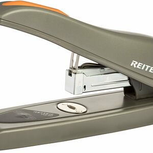Степлер средний вертикальный Attache 8918 один из важных помощников для работы с документацией в офисе, образовательных учреждениях и дома. Корпус выполнен из полупрозрачного пластика черного цвета. Прорезиненные рельефные вставки черного цвета обеспечивают удобство захвата и предотвращют скольжение. Рабочие компоненты изготовлены из высококачественной стали. Степлер одновременно сшивает до 20 листов бумаги плотностью до 80 г/кв.м. Позволяет производить сшивание открытым и закрытым способом. Степлер совместим со скобами 24/6 и 26/6. Глубина закладки бумаги 50 мм (5 см). Вместимость лотка для скоб: 80 скоб размером 24/6, 100 скоб размером 26/6. Размер изделия: 131 68 32 мм. Возможно вертикальное расположение.Для эффективного сшивания максимально допустимого объема бумаги необходимо расположить степлер на горизонтальной тв