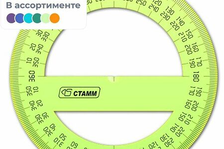 Транспортир Стамм относится к коллекции Neon Cristal, изготовлен из прозрачного пластика. Представлен четырьмя яркими цветовыми вариантами розовым, оранжевым, зеленым и желтым. Предназначен для чертежных работ. Отверстие для карандаша позволяет точно находить центр и вычерчивать окружность 360 градусов. Диаметр транспортира 10 см. Шкалы и логотип нанесены методом термопечати, устойчивы к истиранию.