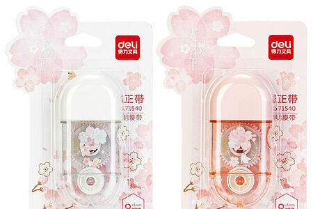 Корректирующая лента Deli это идеальное средство для исправления печатного или рукописного текста.Не нужно ждать высыхания, можно сразу вносить исправления. Корректирующий слой ленты ложится четко по линии. Корректирующая лента моментально исправляет ошибки не нужно ждать высыхания.Исправления не заметны на копиях, сделанных на ксероксе. Плотное и точное покрытие. Общая длина корректирующей ленты 8 м, ширина 5 мм.Цвет корпуса бесцветный, внутренние детали имеют два варианта цвета белый и розовый и сочетаются по цвету с колпачками. Корпус изготовлен из прозрачного пластика. Дизайн сакура. Поставляется в блистерной упаковке.Исправление документов корректирующей лентой Deli это просто, быстро и качественно!Внимание! Товар поставляется в нескольких вариантах цвета/дизайна (без возможн