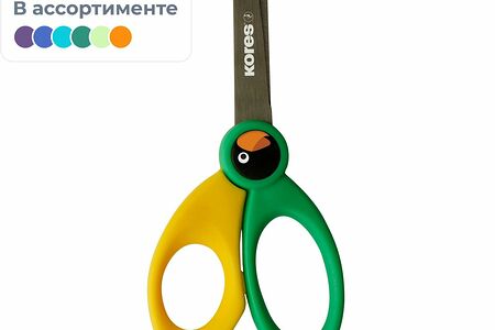 Ножницы Kores Birdy, лезвия из нержавеющей стали с закругленным концом для повышенной безопасности. Эргономичные ручки, одинаково удобные для правшей и левшей. Ножницы рекомендованы для работы дома и в школе. Ножницы представлены на картонной подложке с европодвесом.
