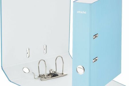 Папка-регистратор 75 мм Attache Акварель А4, изготовлена из картона, покрытого ламинированной бумагой. Цвет голубой, формат А4. На корешке шириной 75 мм кольцо для удобного захвата. Арочный механизм произведен в Чехии.Папка-регистратор вмещает до 480 листов стандартной плотности.