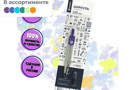 Готовальня Глобус ЦЧП-40Б School циркуль 125мм,мет,зап.грифель,в асс,блист доставка