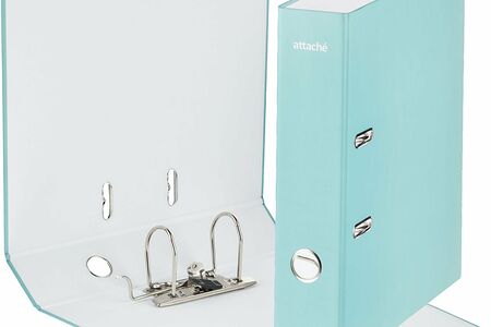 Папка-регистратор 75 мм Attache Акварель А4, изготовлена из картона, покрытого ламинированной бумагой. Цвет бирюзовый, формат А4. На корешке шириной 75 мм кольцо для удобного захвата. Арочный механизм произведен в Чехии. Папка-регистратор вмещает до 480 листов стандартной плотности.