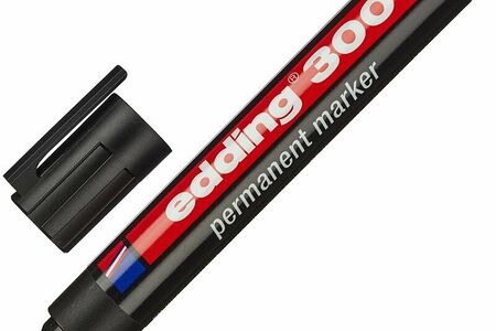 Маркер перманентный Edding E-300/1 в прочном пластиком корпусе. Нестираемые светостойкие чернила на спиртовой основе. Идеально подходит для надписей на металле (в том числе и на грязном), картоне. Может использоваться для таких поверхностей, как дерево (в том числе влажное), стекло, пластик, керамика, кафель, различные пленки. Круглый наконечник позволяет провести линию толщиной от 1,5 до 3 мм. Edding E-300/1 является заправляемым, рекомендуются чернила Edding Т-25. Страна производства — Германия. Цвет — черный. Размеры маркера: диаметр 16 мм, длина 137 мм.