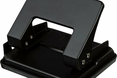 Материал корпуса дырокола: металл/пластик.Пробивает одновременно два отверстия.Диаметр отверстия 5.5 мм.Расстояние между отверстиями 80 мм.Встроенная линейка отсутствует.Имеет метку центрирования.