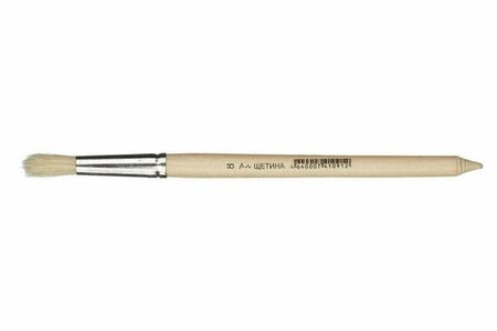 Кисть 1 School щетина круглая 8. Жесткая щетина отличается прочностью и упругостью, хорошо наполняется и удерживает краску. Кисть имеет короткую (18.5 см), деревянную ручку. Кисть предназначена для работ с маслом, тушью.Поставляется без упаковки.