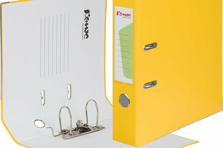Папка-регистратор с арочным механизмом 'Комус' подходит для хранения документов в большом количестве. Формат А4. Изготовлена из плотного картона, покрытого бумвинилом желтого цвета. Внутренняя вклейка бумажная. Арочный механизм произведен в Чехии. Нижние края папки защищены от повреждений металлическим кантом. На корешке шириной 75 мм имеется карман со сменной этикеткой и кольцо для захвата. Благодаря прорезям для колец на внешней крышке папка-регистратор 'Комус' остается закрытой даже при большом количестве бумаг. Размер кармана на корешке папки может быть разным, в зависимости от производителя папок.Цвет папки может быть насыщенным, либо более светлым в зависимости от производителя папок.Высота папки может отличаться в зависимости от производителя. Размеры могут быть 317х285х75 мм или 320х285х75 мм.