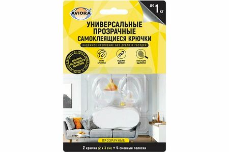 Крючок универсальный самоклеящийся малый, 2шт/уп., AVIORA 302-206 доставка