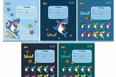Тетрадь школьная А5 12л №1School Shark клет,скреп,ВД-лак,в асс доставка