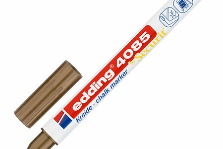 Меловой маркер edding 4085. Цвет медный. Предназначен для нанесения рисунков и надписей на гладкие поверхности, такие как стекло, кафель, пластик, меловые доски (в том числе черные). Легко стираются влажной салфеткой.Чернила этого маркера ни что иное как жидкий мел на водной основе без каких-либо примесей, поэтому данный маркер прекрасно подходит для детей. Edding 4085 отличный инструмент для воплощения творческих идей дома, но так же рекомендуется для использования в офисах, ресторанах, стекольной и других видах промышленности.Уникальная особенность серии edding 4085 наличие необычных цветов и тонкая линия письма всего 1 2 мм, что является большой редкостью для меловых маркеров. Форма наконечника: круглая. Перед использованием маркера требуется произвести его активацию в соответствии с инструкцией.