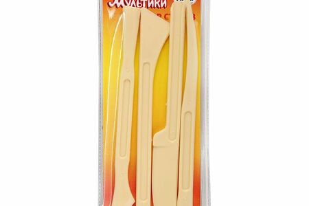 Набор стеков для пластилина из пластика, цвета слоновой кости. Стеки используются для работы с детским пластилином, легко моются водой, нетоксичны и не вызывают аллергии. В наборе 4 стека для пластилина разной формы и назначения, стеки могут использоваться многократно, не имеют срока годности. Упакованы в прозрачную пленку.