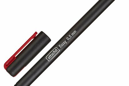Ручка шариковая Attache Essay красная это элегантная, компактная ручка!Модель выполнена в черном цвете, который выгодно оттеняет насыщенные цвета деталей отделки и придает утонченности линиям корпуса. Шариковая ручка оснащена вентилируемым колпачком и клипом в цвет чернил. Одноразовый стержень, снабжен игольчатым наконечником диаметром 0,7 мм, который обеспечивает тонкую линию письма 0,5 мм. Длина стержня 128 мм. Ручка, созданная по революционным технологиям с использованием материалов высшего качества, обеспечивает мягкое и качественное письмо за счет использования красных чернил низкой вязкости на масляной основе. Чернила устойчивы к выгоранию и размытию водой, не замерзают при низкой температуре (до 18 градусов). За счет особого расположения шарика пишущего узла ручка идеально подходит для письма как правой, так и левой рукой. Сочетание уникальных технологий