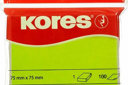 Бумага для заметок с клейким краем Kores подойдут для заметок и сообщений, могут использоваться в качестве закладок. Размер 75 75 мм, неоновая, зеленого цвета. Плотность бумаги составляет 75 г/кв.м, клейкий слой 20Н/м. В упаковке 100 листов, в блистере. После удаления бумаги на поверхности не остается следов клеевого состава, лист можно крепить повторно. Срок годности не ограничен, особых условий хранения не требуется. Длина клейкой стороны 75 мм.Чтобы увеличить срок службы стикеров, пожалуйста, следуйте рекомендациям:1) Отделять стикер от блока следует вдоль клеевой полосы. Так можно избежать скручивания и последующего отклеивания стикера.2) Прежде чем наклеивать стикер, убедитесь в отсутствии грязи и пыли на поверхности. На чистой поверхности срок службы клеевого слоя более продолжителен.