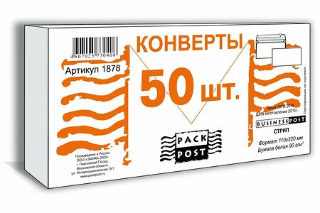 Конверт белый E65 стрип BusinessPost 110х220 50шт/уп/1878 доставка