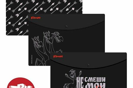 Папка-конверт на кнопке А4 Комус Три Богатыря, черно-бел 180 мкм, 3шт/уп доставка