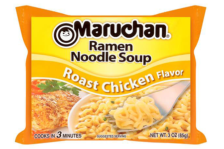 Лапша быстрого приготовления со вкусом жареной курицы. Питательный и быстрый обед. Состав: обогащенная пшеничная мука (пшеничная мука, ниацин, восстановленное железо, мононитрат тиамина, рибофлавин, фолиевая кислота), растительное масло (семена хлопка канолы, пальмовое масло), Е319, соль, сушеные овощи (кукуруза, морковь, лук, чеснок, зеленый лук), содержит менее 2%: мальтодекстрина, глутамата натрия, текстурированного соевого белка, сахара, куриного жира, порошкообразного вареного цыпленка, обезвоженного соевого соуса (пшеница, соевые бобы, соль), гидролизат кукурузы, белок пшеницы и сои, натуральные и искусственные ароматизаторы, специи (семена сельдерея), дрожжевой экстракт, карбонат калия, натрий (моно, гексамета и/или триполи), фосфат, Карбонат натрия, куркума, динатрий-инозинат, динатрия гуанилат, диоксид кремния (агент против слеживания), карамельный краситель, куриный бульон, лактоза, соевый лецитин. Информация об аллергенах: содержит ингредиенты из пшеницы, сои и молока. Пищевая и энергетическая ценность на 64 г продукта: 290 ккал, жиры 12 г, углеводы 38 г, белки 7 г.