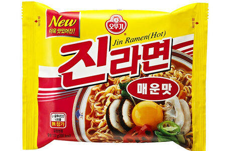 Острая лапша быстрого приготовления Jin Ramem - сытный и питательный способ быстро и интересно пообедать. Состав: Лапша (пшеничная мука, картофельный крахмал, пальмовое масло, соль, эмульгированный жир, соевое масло, лецитин, говяжий экстракт, луковый экстракт, щелочная добавка карбонаты кальция Е170, карбонат натрия Е500 регулятор кислотности, кальций витамин В2), приправа (соль,сахар, глюкоза, порошок соевого соуса, крахмал, говяжий экстракт красный, чеснок жареный, черный перец молотый, красный перец жареный, красный перец молотый, экстракт перца чили, морковь, лук, шампиньоны, сушеные бурые водоросли). Пищевая и энергетическая ценность на порцию 120 г продукта: 500 ккал/2090 кДж, белки 11 г, жиры 15 г, углеводы 80 г. Условия хранения: хранить в прохладном месте, избегать попадания прям солнечных лучей. Срок годности: 12 месяцев.