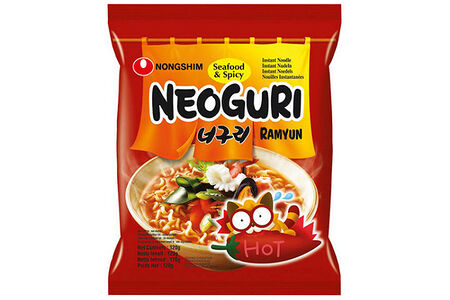 Острая лапша Neoguri – это корейская пшеничная лапша быстрого приготовления со вкусом морепродуктов. Острый вкус красного перца и тонкий аромат даров моря (анчоусов, креветок, устриц, мидий, водорослей, тунца) в сочетании с овощами – такое аппетитное блюдо станет отличной альтернативой классическому обеду и ужину. Лапша поставляется в компактных прямоугольных пакетах, ее легко взять с собой на работу или в дорогу, чтобы подкрепиться в удобное время.