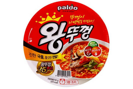 Лапша быстрого приготовления с острым вкусом Кимчи. Кимчи - традиционное блюдо корейской кухни, представляющее собой маринованную пекинскую капусту в остром соусе. Состав: лапша (модифицированный крахмал, соль, пшеничная мука в/с, клейковина, картофельный крахмал, пальмовое масло), бульон-приправа (соль обжаренная, вкусовая основа, соль, усилители вкуса (гуанилат, инозинат натрия), жареный красный перец, сахар, экстракт говядины порошок, глюкоза, молочная сыворотка, карамельный колер, порошок соевой пасты), сушеные овощи: жареные бобы хлопья, капуста пекинская сушёная, соевый текстурат, морковь сушеная, зеленый лук хлопья, хлопья яиц. Пищевая и энергетическая ценность на 100 г продукта: 427 ккал/1761 кДж, белки 8 г, жиры 17 г, углеводы 58 г. Условия хранения: хранить в прохладном месте при температуре не выше +30°С, избегать попадания прям солнечных лучей. Срок годности: 12 месяцев.