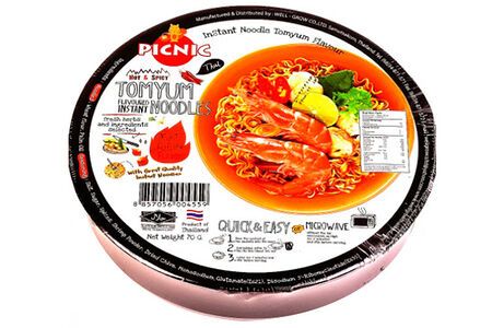 Лапша быстрого приготовления из Таиланда со вкусом супа Том Ям. Яркий, кисло острый бульон со вкусом морепродуктов идеально сочетается с лапшой. Сытный и питательный обед для любителей морепродуктов.