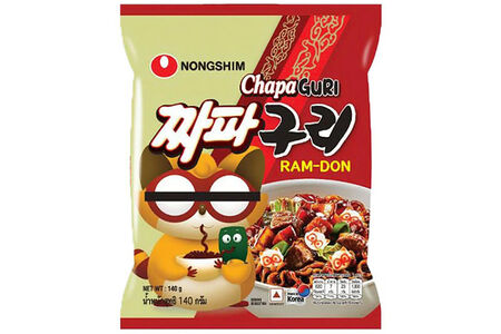Лапша быстрого приготовления ChapaGuri от бренда Nongshim. Состав: лапша: пшеничная, картофельный крахмал, растительное масло (антиоксидант Е307В), подсластитель Е420, соль, минеральные соли (Е339, Е500, Е501), эмульгатор (Е322, соевый), сахар, экстракт зеленого чая, краситель Е101. суповая основа: сахар, соя, мальтодекстрин, краситель Е150С, соль, гидролизированный растительный белок (соя, кукуруза, пшеница), усилитель вкуса (621, 627, 631, 364, 640), растительный крахмал (тапиока, картошка, кукуруза), мука (кукурузная, рисовая), кальмар, растительное масло (содержит сою), дрожжевой экстракт, мидии, моллюски, глюкоза, загуститель (414, 460, 415), рыба, ароматизатор, минеральные соли (Е339, Е500, Е501), соевый соус, фруктоза, морские водоросли, экстракт зеленого чая. масло приправы: растительное масло (содержит кунжут), ароматизатор, овощи, специи. хлопья: морские водоросли, соя, овощи, рыба, крахмал (тапиоки, картошка, кукуруза), пшеничный глютен, соевый соус, подсластитель Е420, сахар, соль, дрожжевой экстракт, глюкоза, какао-порошок, растительное масло, усилитель вкуса (627, 631, 364, 640), мальтодекстрин, минеральные соли Е339, усилитель вкуса, специи. Способ приготовления: вскипятить 350 мл воды и добавьте: лапшу, суповую основу, хлопья и масло приправы. Во время приготовления непрерывно помешивать в течении 5 мин. Снимите с огня и подавайте. Энергетическая и пищевая ценность на 100 г: 444,25 ккал, белки - 7.9 г, жиры - 16.3 г, углеводы - 66 г.