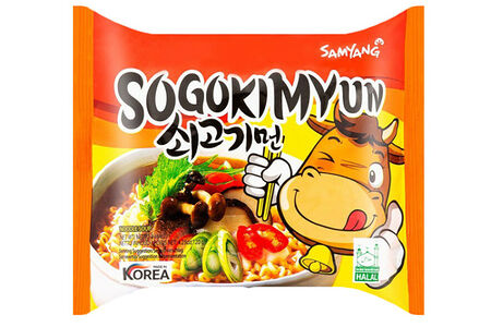 Классическая корейская лапша с традиционными приправами. Заваривается за несколько минут. Лапша со вкусом говядины Samyang поможет быстро и с удовольствием утолить голод, восполнит недостаток энергии и нехватку витаминов. Состав: лапша – пшеничная мука, крахмал из тапиоки, пальмовое масло, пшеничный глютен, соль, соевое масло, порошок лука, регуляторы кислотности, масло; порошок со вкусом сыра, сахар, соевый соус, порошок со вкусом курицы, красный перец, соевое масло, порошок лука, чесночный порошок, крахмал тапиоки, экстракт дрожжей, паприка, черный перец, соль; обезжиренное молоко, жареный кунжут, морская капуста. Пищевая и энергетическая ценность на 100 г продукта: 440 ккал/1840, белки 8 г, жиры 9 г, углеводы 58 г. Срок хранения: 12 месяцев.