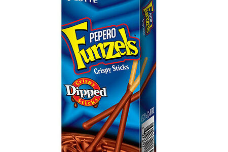 Популярное в Корее и известное во всем мире печенье Pepero (пеперо) Lotte Funzels - шоколадные палочки. Вкусные, хрустящие, с волшебным ароматом, вкусом настоящего шоколада и сливочной помадки. Состав: пшеничная мука, шоколад (сахар, какао масса, растительное масло (пальмовое, подсолнечное), соевый лецитин (эмульгатор Е322), витамин Е (антиокислитель Е306), лактоза, какао (цельное сухое молоко, какао масса), шортенинг яйцо, сливочное масло, цельное сухое молоко, трехосновной фосфат натрия, бикарбонат аммония, бикарбонат натрия, соль, порошок миндаля, сыворотка молочная сухая, эмульгатор (лецитин, глицерин и жирных кислот эфиры), искусственный ароматизатор (шоколад, ванилин, концентрированный молочный ароматизатор), папаин. Содержит муку, молоко, яйцо, сою, миндаль. Энергетическая и пищевая ценность на 100 г: 475 ккал, белки 10 г, жиры 18 г, углеводы 69 г.