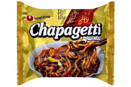 Чапагетти (Chapagetti) — это версия популярной в Корее лапши Чачжанмён с соусом из черных бобов чадян от компании Nongshim. Копания Nongshim потратила годы для разработки рецепта и смогла сделать популярную, но сложную в приготовлении лапшу в виде блюда быстрого приготовления. Теперь вы сможете насладиться этим корейским блюдом на работе и дома! Состав: лапша (пшеничная мука, картофельный крахмал, пальмовое масло, модифицированный картофельный крахмал, соль, приправа (увлажняющее вещество: Е420, подсолнечное масло), антиоксидант (Е306), эмульгатор (Е322 (содержит сою)), регулятор кислотности (Е501, Е452, Е500, Е339), краситель Е101, экстракт зеленого чая; приправа: специи (соевая паста, кукурузная мука, мальтодекстрин, соль, лук, пальмовое масл, пшеница, креветка), сахар, карамельный порошок ( мальтодекстрин, краситель (Е150с), усилитель вкуса (631, 627); приправленное масло: растительное масло (рапсовое, луковое, оливковое, кукурузное, кунжутное, горничное); сушенные овощи: текстурированный растительный белок (обезжиренная соя, пшеничный глютен), капуста, жаренный картофель (картофель, пальмовое масло), лук, морковь. Пищевая и энергетическая ценность на 100 г: белки – 7.8 г, жиры – 15 г, насыщенные жиры – 5.9 г, углеводы – 68 г, 430 ккал. Срок хранения: 12 месяцев. Способ приготовления: положите лапшу и сушенные овощи в 600 мл (3 стакана) кипящей воды и варить на медленном огне 5 мин. Снять с огня, слить воду (оставить приблизительно 4 столовых ложки воды), добавить приправленное масло и приправу. Размешать и подать к столу.