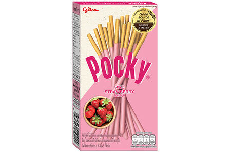Печенье-палочки Pocky - это хрустящая соломка с нежной глазурью со вкусом клубники. Нежное лакомство по вкусу схоже с мороженым. Соломка располагается в удобной упаковке, которую легко брать с собой. Состав: пшеничная мука, сахар, растительный жир, сухое обезжиренное молоко, лактоза, кондитерский жир, цельнозерновая мука, клубничный порошок, эмульгатор (Е322(i)), разрыхлитель (Е500(i), натуральный краситель Е160а(i)), протеза, ароматизатор идентичный натуральному. Пищевая и энергетическая ценность на 100 г продукта: 240 ккал, белки 15 г, жиры 4,5 г, углеводы 40 г. Срок годности: 12 месяцев.