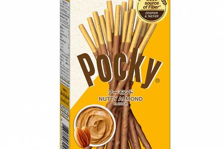 Поки в шоколаде с миндалем от Glico. Состав: пшеничная мука, сахар, растительное масло, лактоза, миндальные хлопья, клетчатка, кондитерский жир, цельнозерновая мука, загуститель (Е1412), эмульгатор (Е322(i)), разрыхлитель Е500 (i), натуральный краситель Е160а(i), антиоксидант Е307b, ароматизатор идентичный натуральному. Пищевая и энергетическая ценность на 100 г продукта: 240 ккал, белки 15 г, жиры 4,5 г, углеводы 40 г. Срок годности: 12 месяцев.