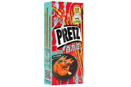 Запеченные хлебные палочки Pretz со вкусом креветки. Состав: Пшеничная мука, сахар, пищевое растительное масло, маргарин, масло, сухое цельное молоко, сывороточный порошок, порошок креветок, пищевая соль, ароматизаторы, бикарбонат натрия, дрожжи. Пищевая и энергетическая ценность на 65 г продукта: 307 ккал/1284 кДж, жиры 13,3 г, белки 8,8 г, углеводы 35,2 г, натрий 220 мг. Срок годности: 12 месяцев.